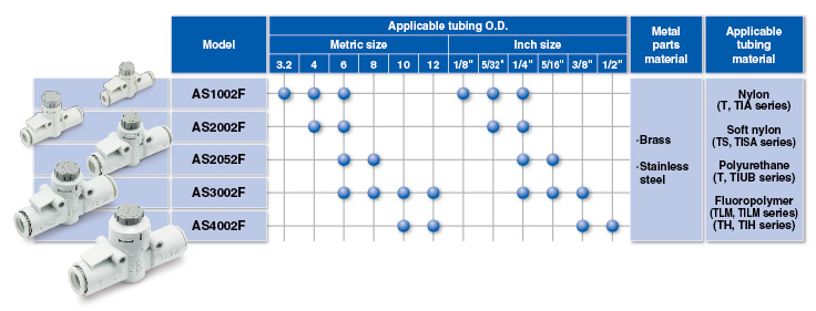 | In-line type | AS2002F to AS4002F | - | φ3.2 to φ12 | φ1/8'' to φ1/2'' |