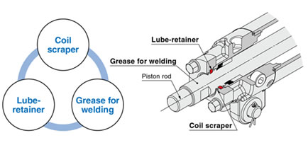 - Achieves long service life by the use of the three roles of the coil scraper, Lube retainer and grease for welding in one unit for a cylinder.